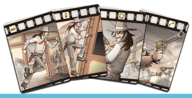 Au début de la partie, chaque joueur choisit donc un personnage et chacun reçoit des cartes action. Se déplacer, grimper sur un wagon, tirer une balle… les aficionados du titre original ne seront pas dépaysés.