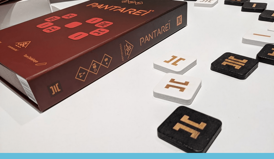 Dans Pantareï, des tuiles sont alignées sur la table et représentent les écailles d’un serpent. Pour gagner, il faut réussir à contrôler une pile de sept écailles. À votre tour, vous pouvez déplacer une écaille de votre couleur d’autant de cases qu’indique son symbole. Des piles vont progressivement se former, réduisant les possibilités de déplacement. Mais attention : vous ne pouvez déplacer que les deux dernières tuiles d’une pile. Il va donc falloir, une fois de plus, la jouer fine et anticiper les mouvements de votre adversaire pour ne pas être pris de court.