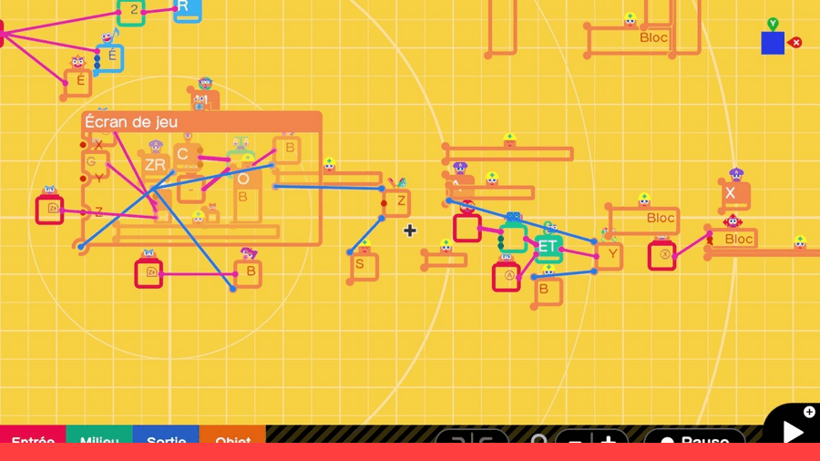 Très vite, votre tableau de bord sera rempli de Nodons liés entre eux et vous aurez ainsi un (petit) aperçu de ce qui peut bien se passer dans la tête d’un développeur. Heureusement, vous pouvez à loisir tester l’impact de l’une de vos modifications sur votre jeu. Le personnage saute-t-il encore correctement ? Cette plateforme est-elle toujours accessible ? Ce mécanisme tient-il la route ?