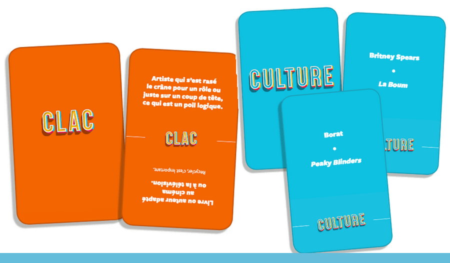 Du rire, des règles simples, un jeu rapide… Voilà tout ce qu’on demande d’un jeu apéro. Et pour cet ami qui trouve que tout ça manque un peu de culture, il y a désormais Clac ta culture, un jeu qui marche aussi bien avec ceux qui en ont qu’avec ceux qui en ont moins !