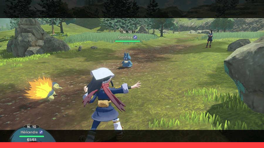C’est justement pour en savoir plus sur ces étranges créatures que vous rejoignez le groupe de chercheurs Galaxie. La ville de Rusti-Cité vous servira de base, et il faudra systématiquement établir un campement dans les lieux que vous visiterez. Place ensuite à l’exploration. Chaque Pokémon que vous rencontrerez se comportera différemment en vous voyant. Certains fuiront, et d’autres vous attaqueront. Vous pouvez donc choisir de vous déplacer discrètement et d’approcher les spécimens avant de tenter un lancer de Poké Ball, ou tout simplement de les combattre à l’aide de vos propres compagnons.