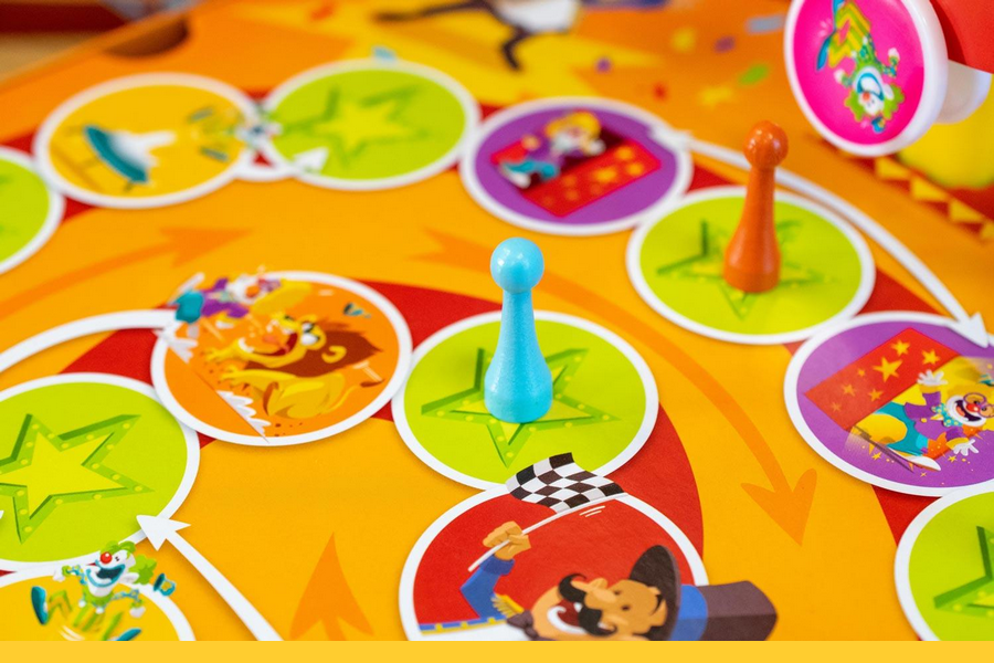 Spin Circus est un jeu de l’oie moderne accessible à partir de 3-4 ans. Ce qui le différencie des autres ? Sa grande roue, bien sûr, qui donne une tout autre dimension au titre et qui remporte tous les suffrages auprès des petits comme des grands.