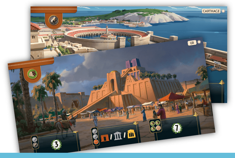 Concrètement, lorsque vous construisez une partie de votre merveille – et uniquement à ce moment -, vous pouvez choisir de payer le coût correspondant à l’édifice en cours de construction lors de cet âge. Emparez-vous alors d’un pion édifice comme preuve de votre participation à ce projet. À la fin de l’âge, si tous les pions ont été récupérés, le projet est une réussite. Et comme il y a moins de pions que de joueurs, certains risquent d’être lésés.