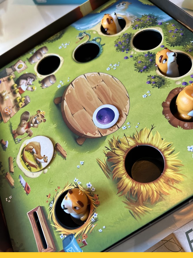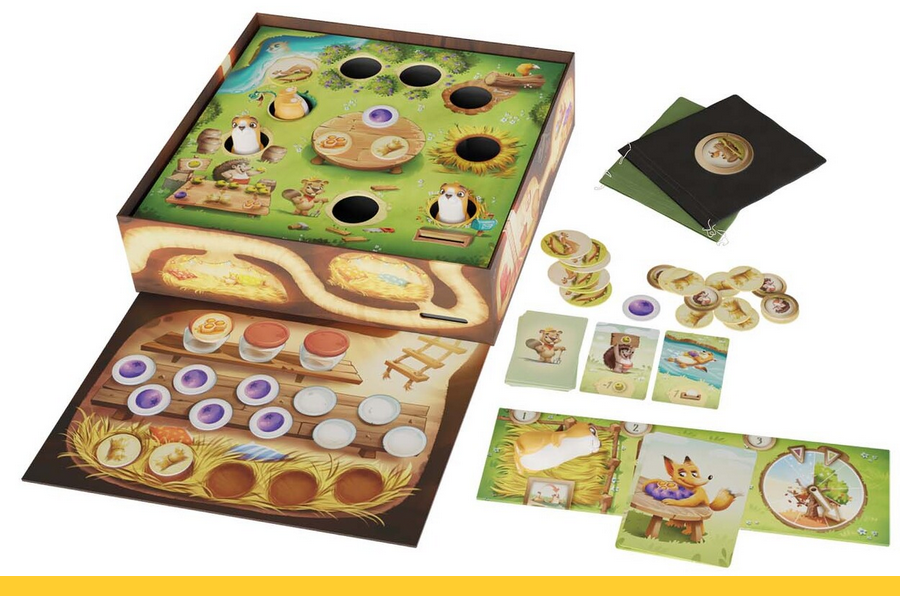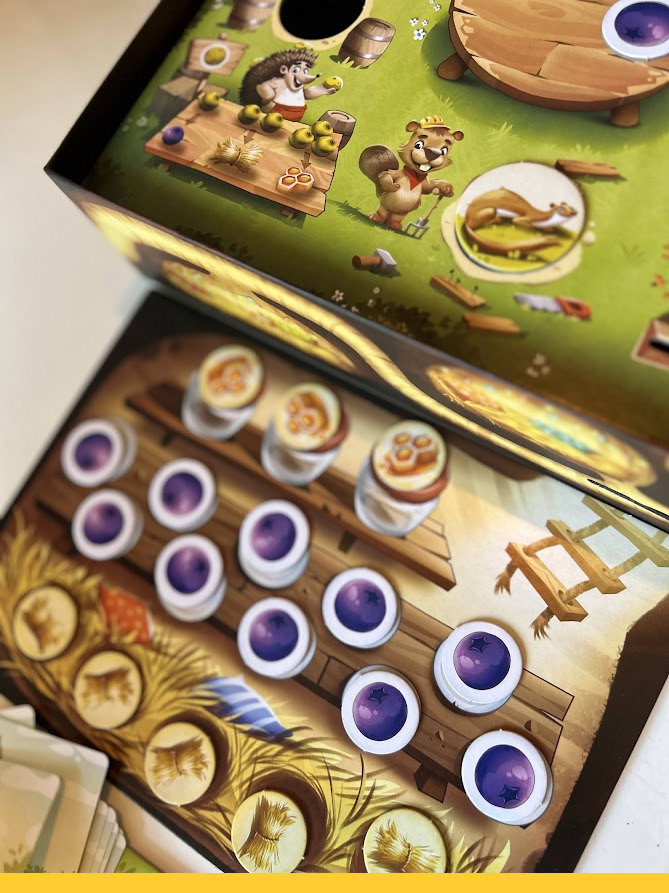 Pour y parvenir, vous allez faire exécuter des actions aux quatre chiens de prairie sur le plateau. Ceux-ci peuvent par exemple fouiller les buissons en espérant récupérer des baies. Il se peut cependant que les baies qu’ils récupèrent soient pourries. Pas de panique, vous pouvez quand même vous en servir comme monnaie d’échange chez Monsieur Hérisson, qui vous fournira des baies mûres, de la paille ou du miel selon la quantité de baies pourries que vous lui offrirez.