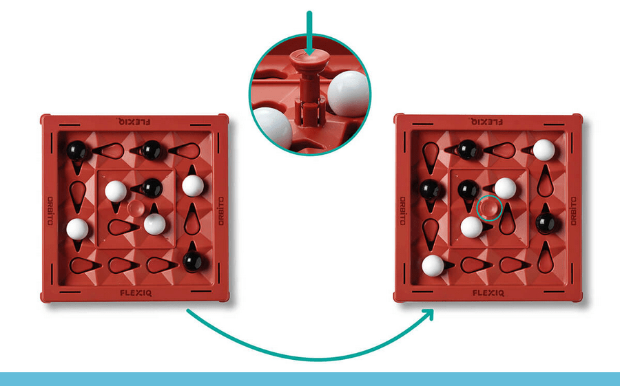 Tout ne se déroulera cependant peut-être pas comme vous le souhaitez. À chaque tour, avant de placer sa bille, chaque joueur peut s’il le désire déplacer l’une des billes de son adversaire de manière orthogonale. Il vaut donc mieux prévoir un plan de secours pour rebondir !