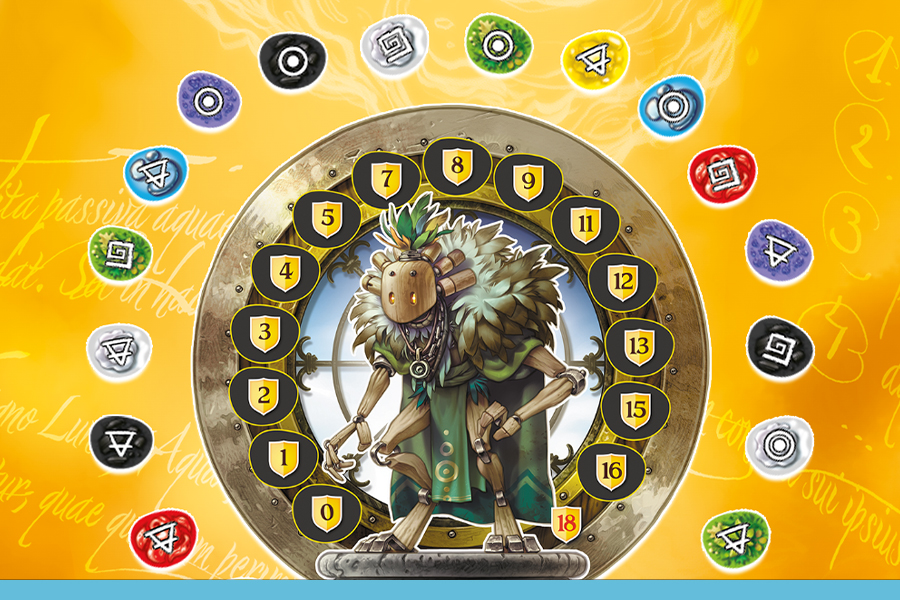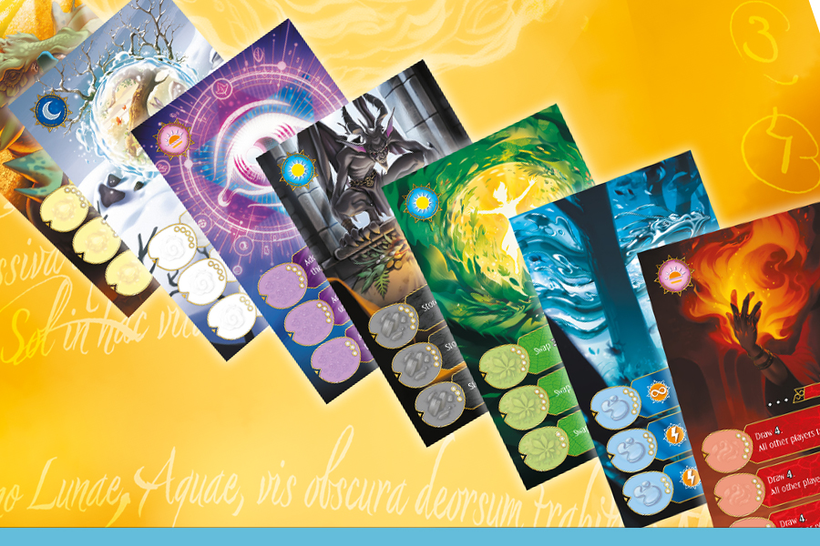 Le tour d’un joueur se décompte en 3 temps de la journée, représentant chacun une action de base : le matin (piocher des matérias), le midi (stocker ces dernières sur son familier) et le soir (débloquer un sort). Les sorts que l’on débloque au fur et à mesure vont nous proposer une action alternative pour le matin, le midi ou le soir.