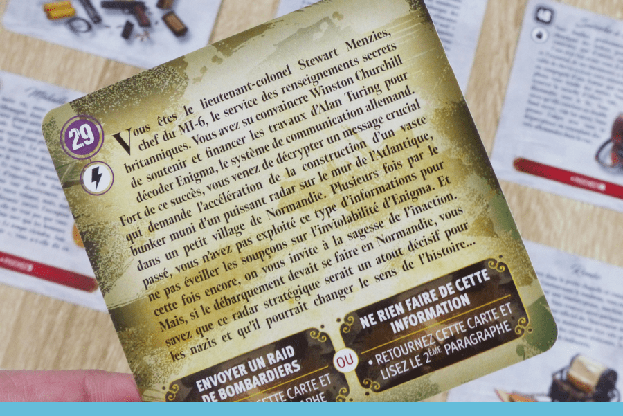 L’autre point fort de Cartaventura Résistance, ce sont évidemment ses illustrations qui contribuent grandement à l’immersion. Notons également la présence d’un livret historique permettant aux joueurs de s’instruire. Le jeu en lui-même peut d’ailleurs être utilisé comme support ludique si l’on souhaite aborder le sujet, à l’école ou ailleurs.
