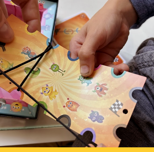 C’est d’ailleurs tout le point fort du jeu : les énigmes sont variées et le matériel surprenant. Vous devrez parfois observer attentivement la boite du jeu pour trouver un intrus, enlacer une ficelle autour d’une carte pour éliminer des suspects, ou encore faire preuve de déduction pour relier un monstre à ses plats préférés.