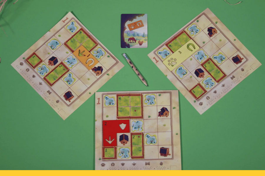 Pour autant, le jeu offre une profondeur stratégique intéressante, avec 4 niveaux de jeu différents qui permettent d’adapter la difficulté aux joueurs. Chacun de ces niveaux ajoute une règle supplémentaire : une mangeoire sur laquelle on ne peut pas dessiner, un renard qui ne peut être caché par les pochoirs, et même une course aux croquettes… Voilà de quoi renouveler l’expérience !