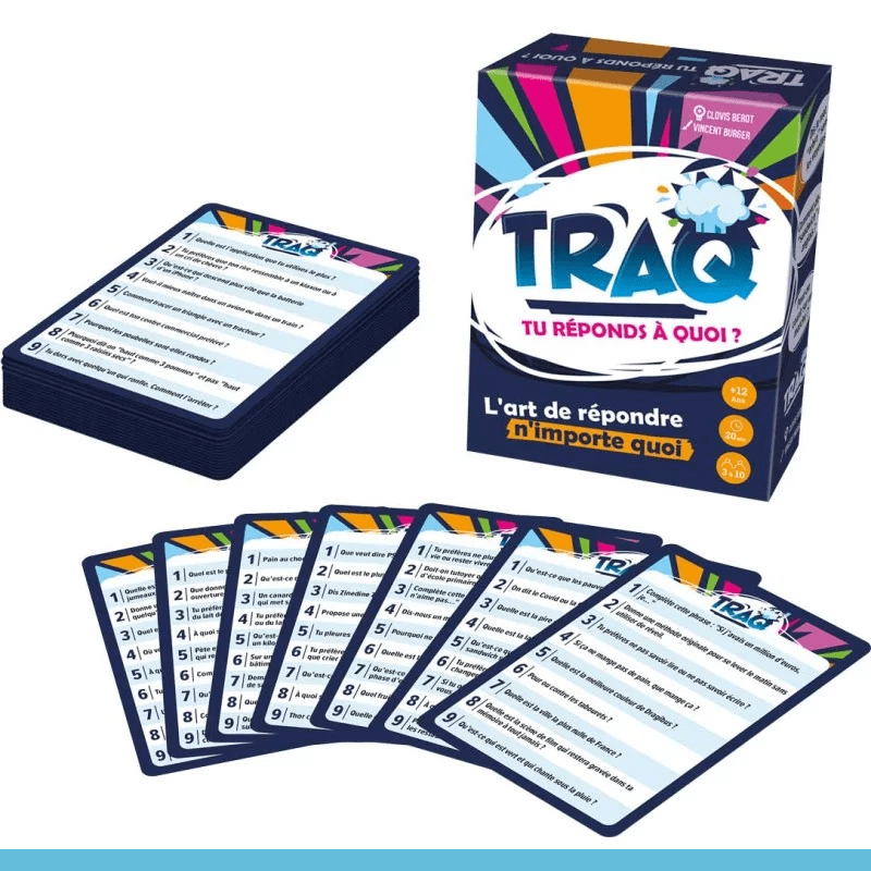 TRAQ va vite devenir le compagnon idéal pour les amateurs de bluff. Tentez de retenir les questions posées et répondez-y à tour de rôle. Vous avez oublié l’une d’entre elles ? Inventez une réponse, mais ne vous faites pas griller !