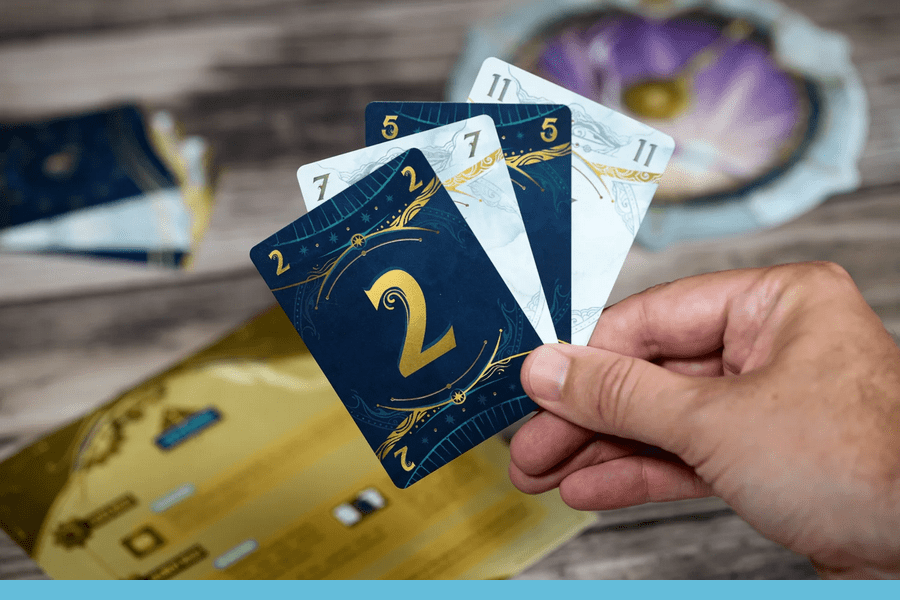 C’est l’heure de la révélation ! Retournez les cartes une à une, puis additionnez les valeurs et vérifiez les conditions sont remplies.